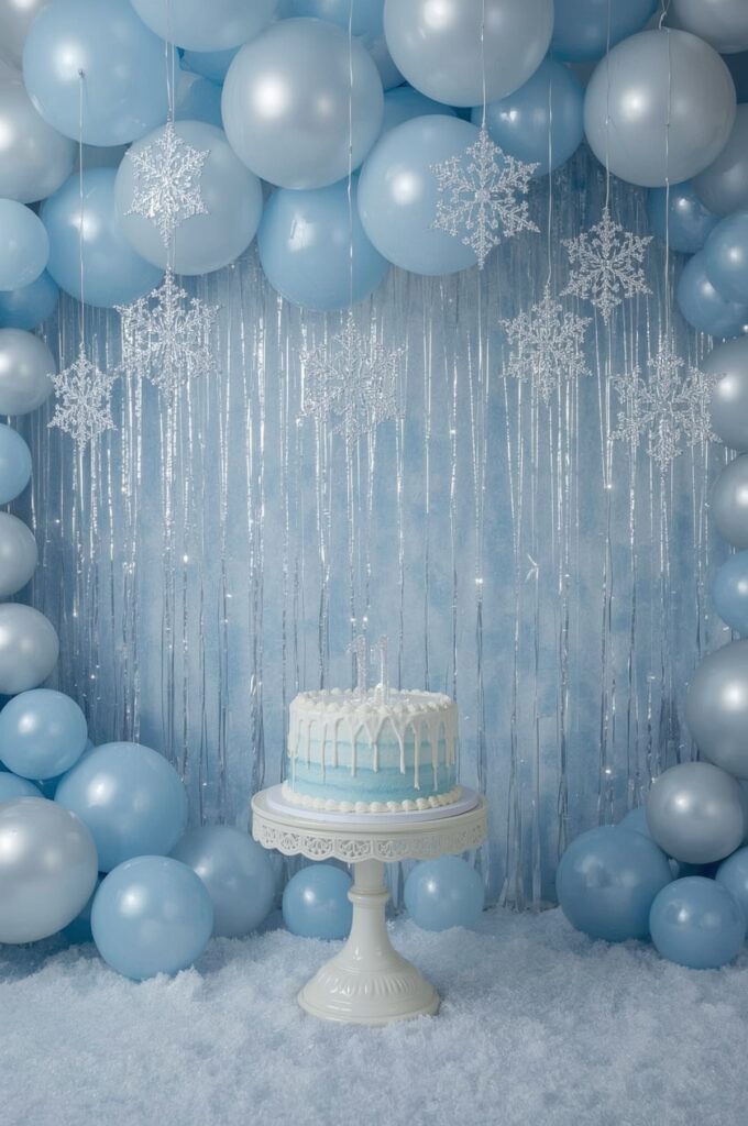 Turn your venue into a shimmering frosted paradise with icy blue balloons, glittering snowflakes, and fairy lights. Add frosted cupcakes, a sparkling cake, and a snowy photo booth to make every guest feel like they’ve stepped into a magical wonderland.